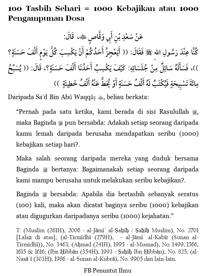- “Subhanallahi wa bihamdih” 100 kali (Kelebihan 1) (Kelebihan 2)
